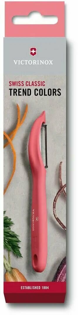 Овощечистка VICTORINOX Swiss Classic Trend Colors универсальная, двустороннее зубчатое поворотное лезвие, малиновая 7.6075.12