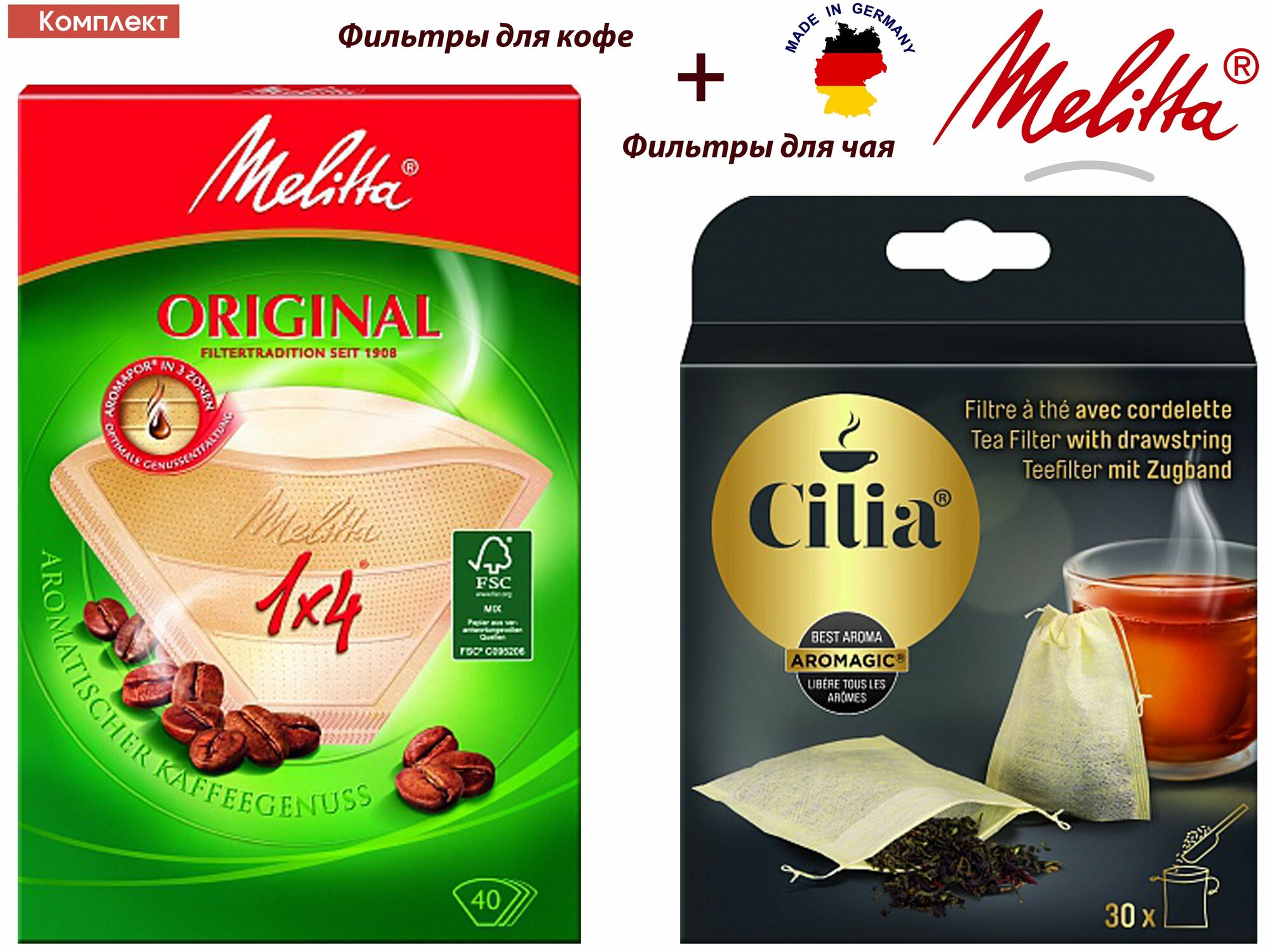 Купить Комплект: Melitta Original, Brown фильтры для заваривания кофе, 1х4/40 и фильтры для чая