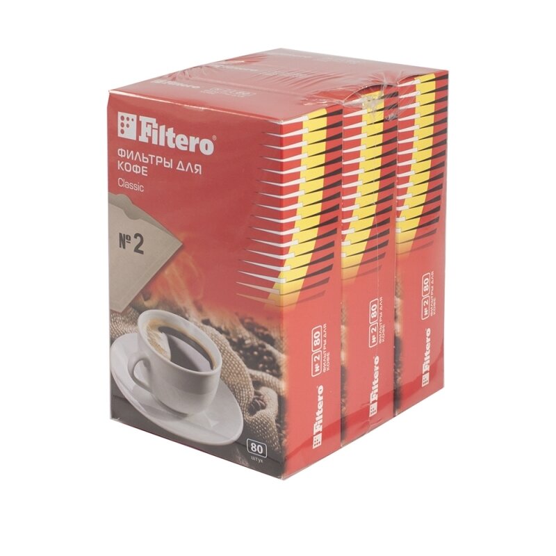 Комплект фильтров для кофе, кофеварки и кофемашин Filtero Classic №2, 80штук, неотбеленные