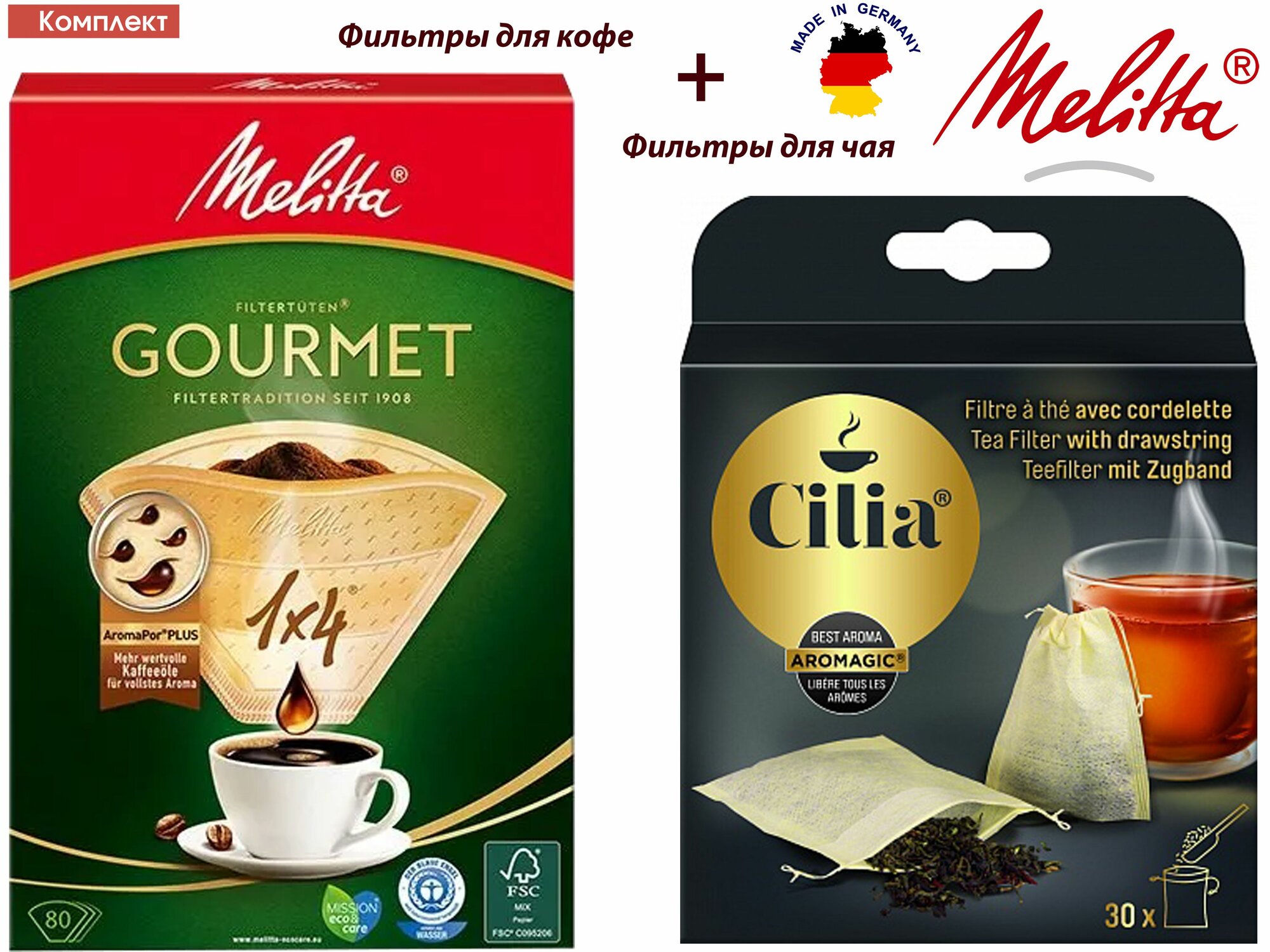 Купить Комплект: Фильтры бумажные для заваривания кофе 1х4/80 и фильтры для чая MELITTA