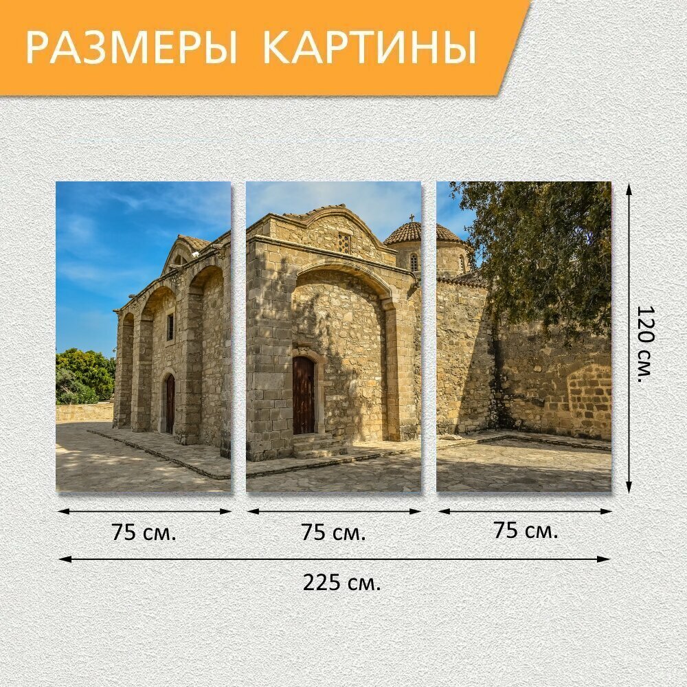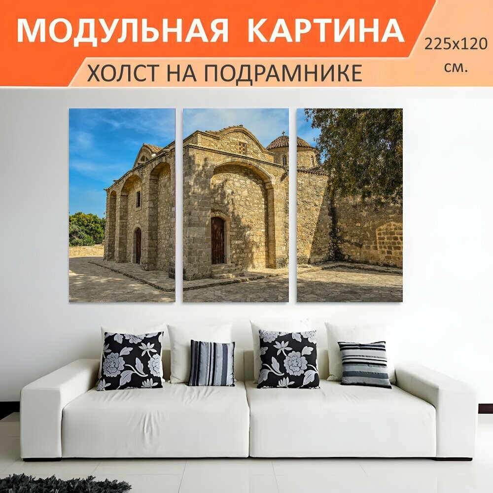 Модульная картина на холсте "Кипр, кити, панагия ангелоктисти" триптих на подрамнике 225х120 см. для интерьера интересное: