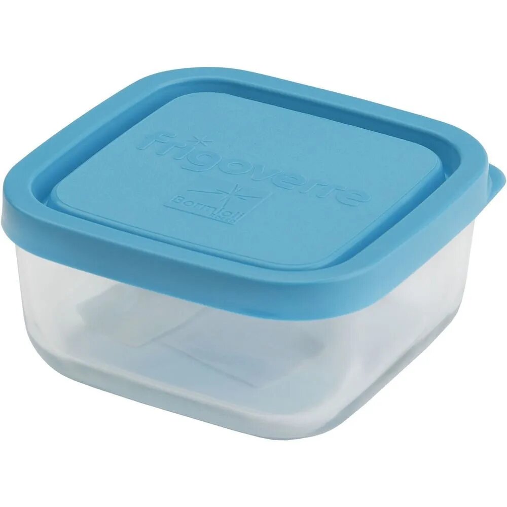 Купить Стеклянный контейнер Frigoverre Bormioli Rocco квадратный 10*10 см, 340 мл, с синей крышкой