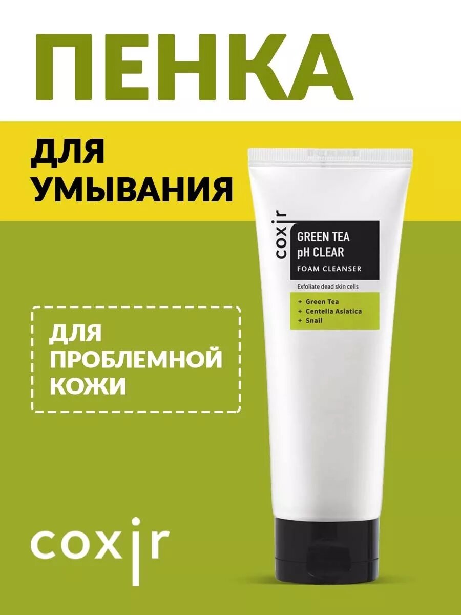 Купить COXIR Очищающая пенка для умывания, для снятия остатков макияжа, для ухода за кожей лица, шеи и зоны декольте с зеленым чаем, корейская косметика. 150мл.