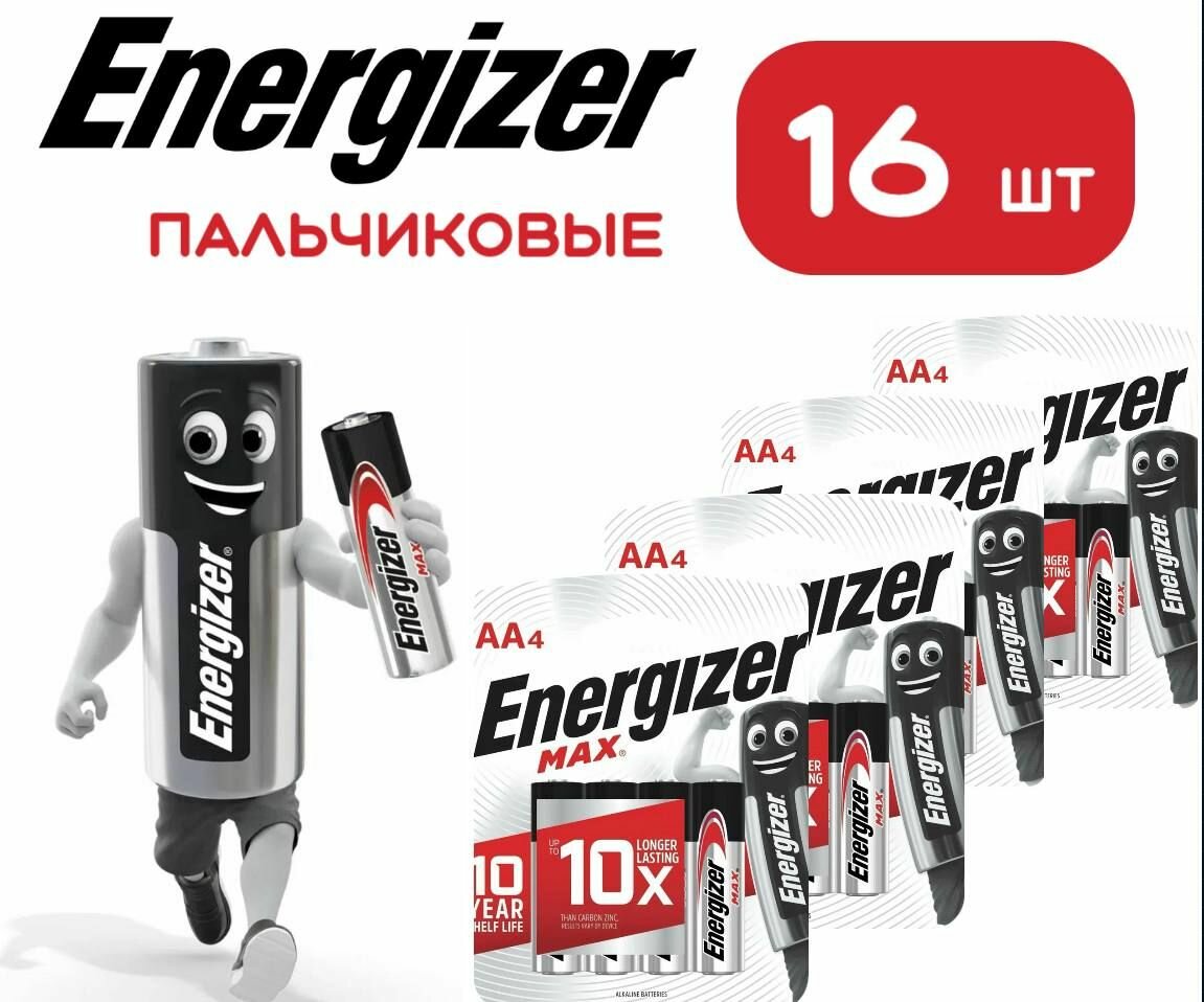 Батарейка Energizer Max AA/LR6, 16 шт. (4 упаковки по 4 шт.)