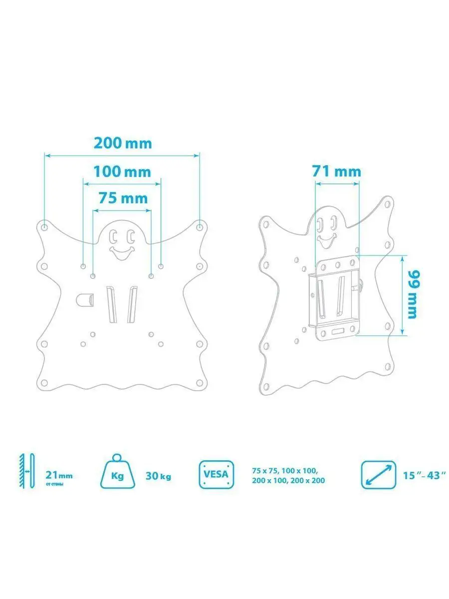 Кронштейн для телевизора настенный Kromax CASPER-200 / до 43 дюймов / до 30 кг / vesa 200x200
