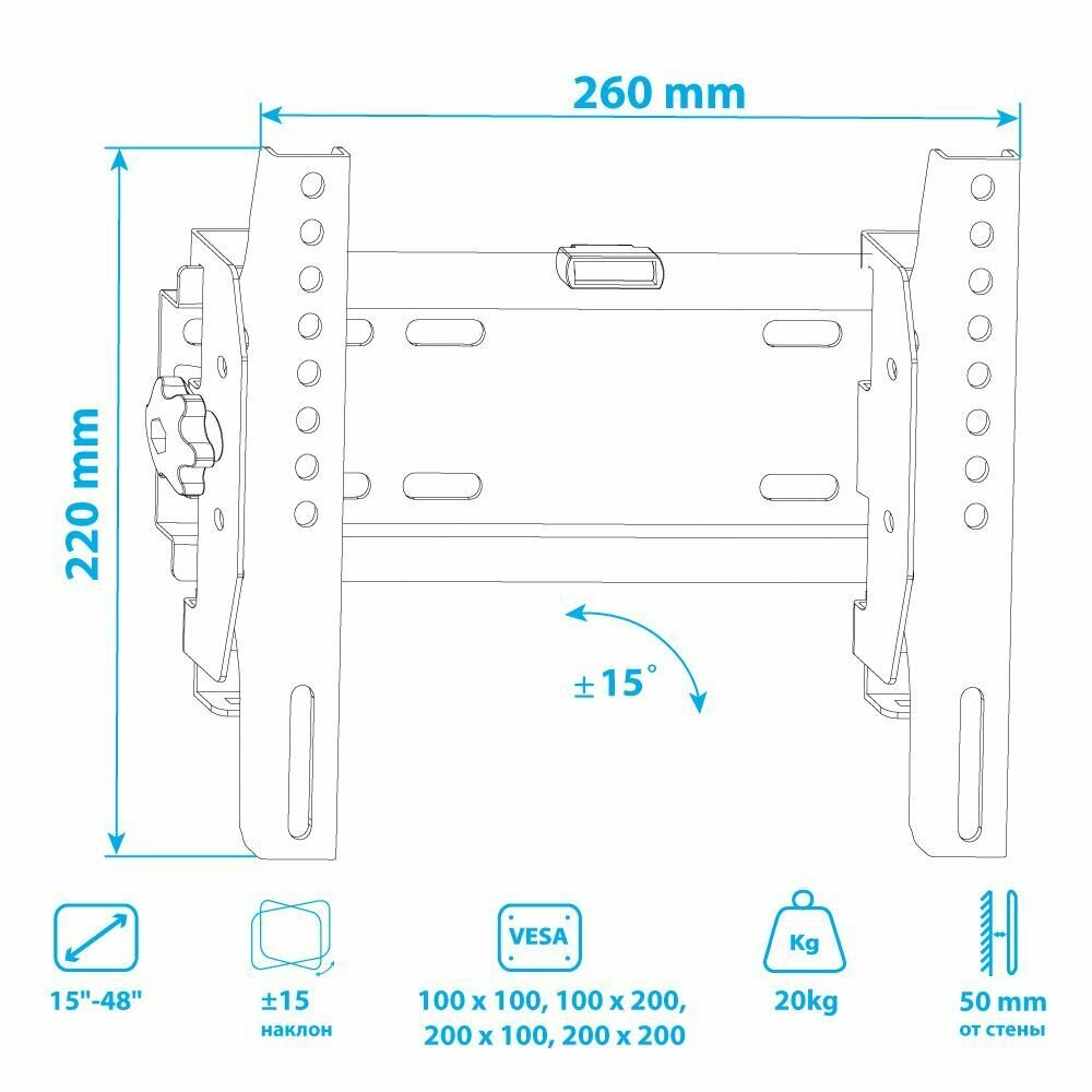 Настенный наклонный кронштейн для установки телевизоров и мониторов с диагональю от 15 до 48 дюймов VLK Trento-38