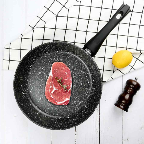 14297 FISSMAN Глубокая сковорода для жарки FIORE 26x6,5см (алюминий с антипригарным покрытием Marble) Ручка-бакелит; Индукция