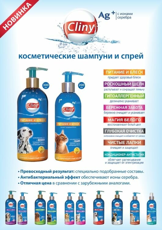 Cliny ® Шампунь для кошек с чувствительной кожей Гипоаллергенный, 200 мл