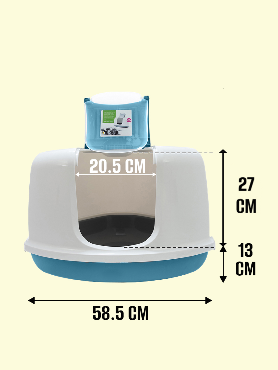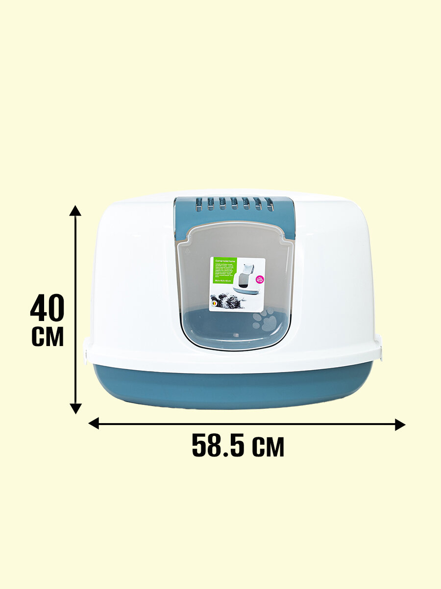 Закрытый, не позволяет выходить сильным запахам. За счет раскрывающейся почти на 180 градусов переучивание кошек будет проще, так как в таком положении домик превращается в полузакрытый лоток. |