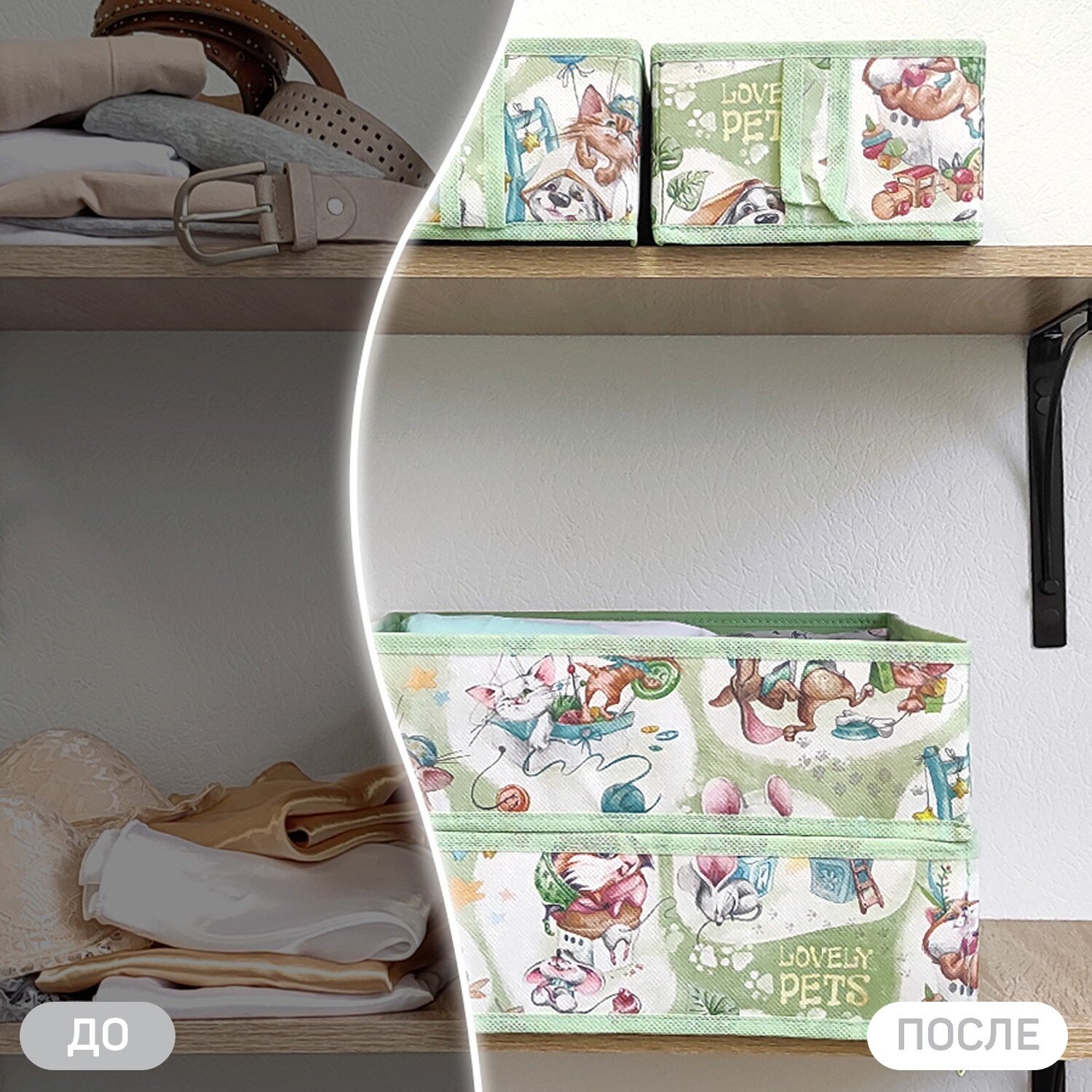 Купить Набор органайзеров для белья, 2 шт., без крышки, 32*32*10 см, зел., любимчики