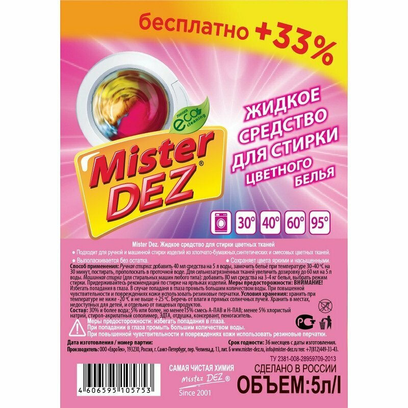 СохранитьГель для стирки для цветного белья Mister DEZ, 5 л интересное:
