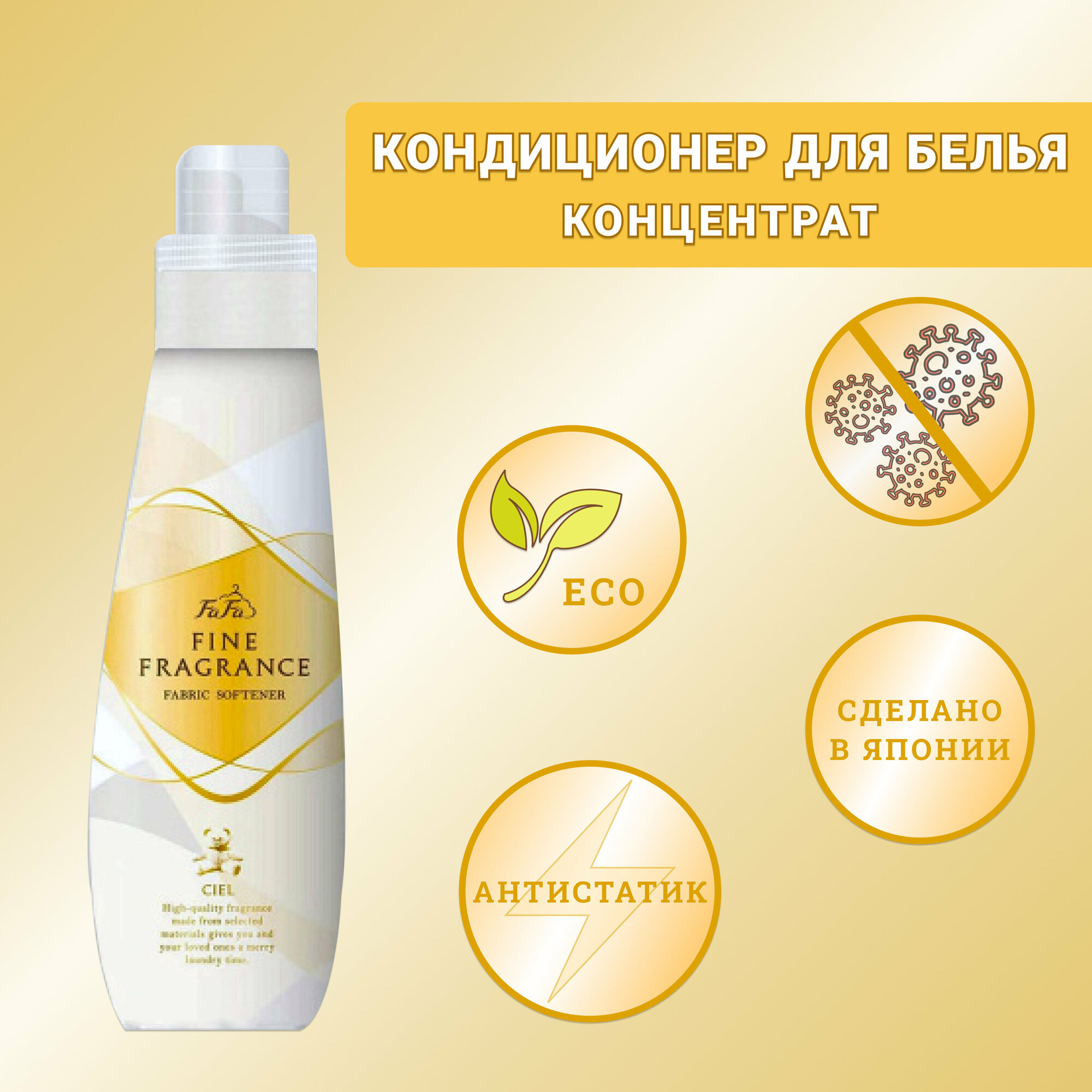 Nissan FaFa "Ciel" Японский антистатический кондиционер для белья с ароматом белых цветов Fine Fragrance, 840 мл. (м/у)
