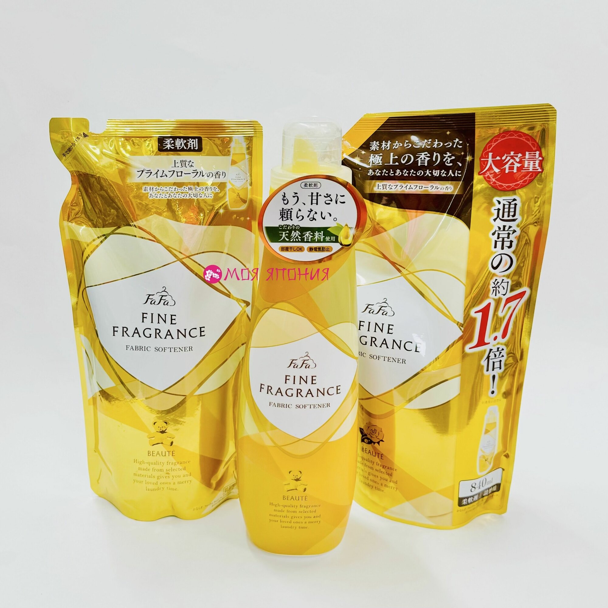 Nissan FaFa "Beaute" Японский антистатический кондиционер для белья с ароматом цветов, мускуса и сандалового дерева Fine Fragrance, 840 мл. x 2 (м/у)