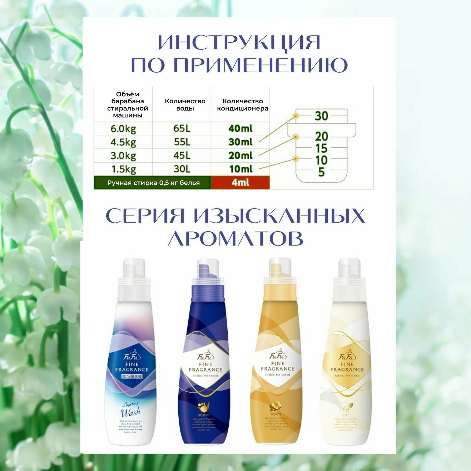 Кондиционер-ополаскиватель с цветочно-мускусным ароматом FaFa Fine Fragrance Beaute, 840мл
