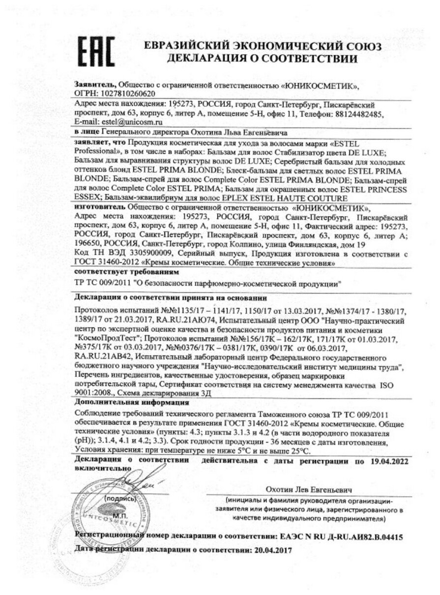 | Отзыв: | Впервые мне понравилось что-то у Estel. Выходила из темного в блонд, волосы не в лучшем состоянии, этот бальзам делает их мягкими, желтизну убирает. Шла за маской, но её не оказалось, решила попробовать бальзам, осталась довольна |