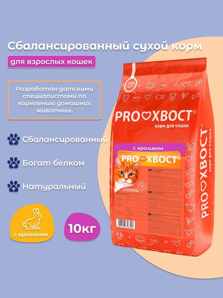 Сухой корм для кошек ProХвост, с кроликом, 10 кг