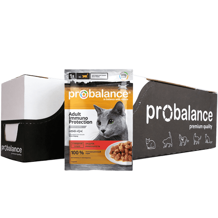 PROBALANCE CAT IMMUNO PROTECTION для взрослых кошек с говядиной в соусе (85 гр х 25 шт)