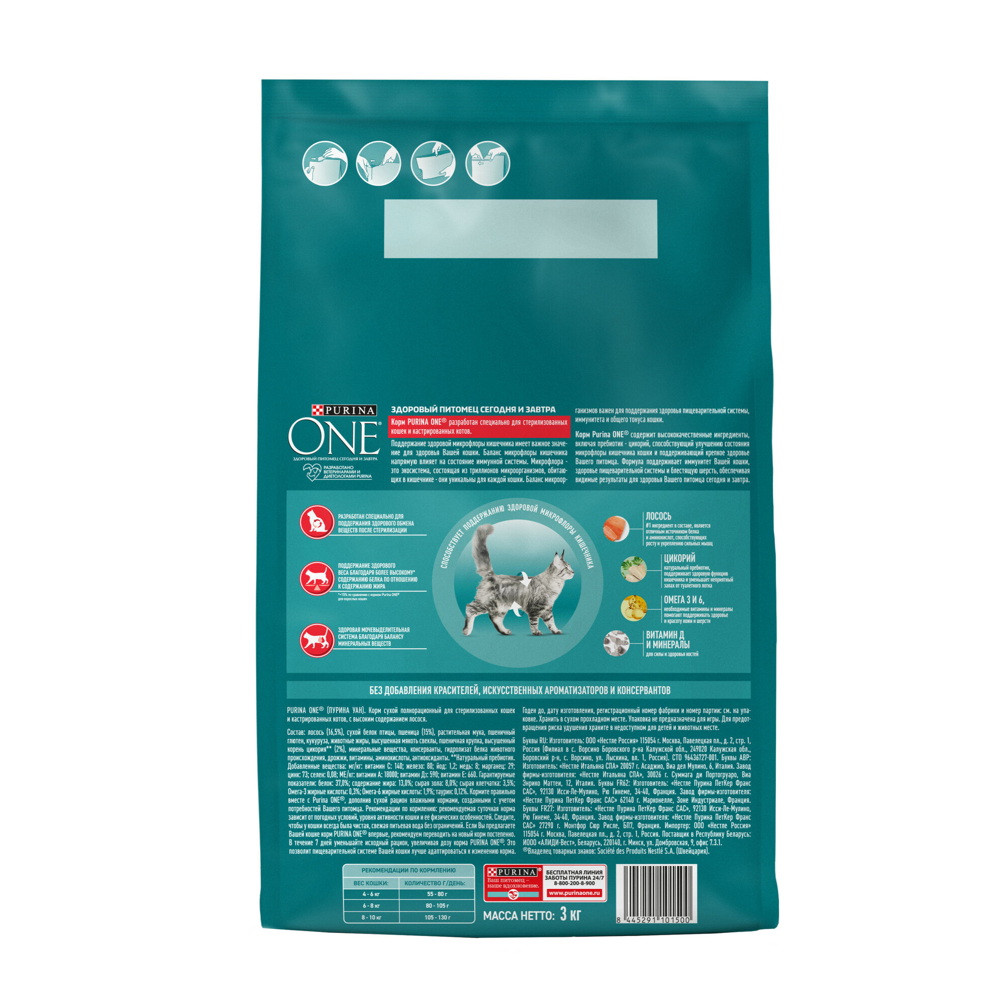 Купить Purina One корм для кастрированных котов и стерилизованных кошек Лосось, 3 кг.