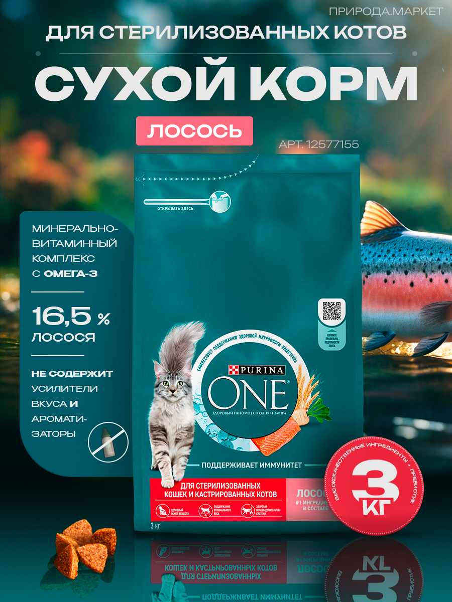 Сухой корм Purina ONE для стерилизованных кошек с лососем, 3 кг