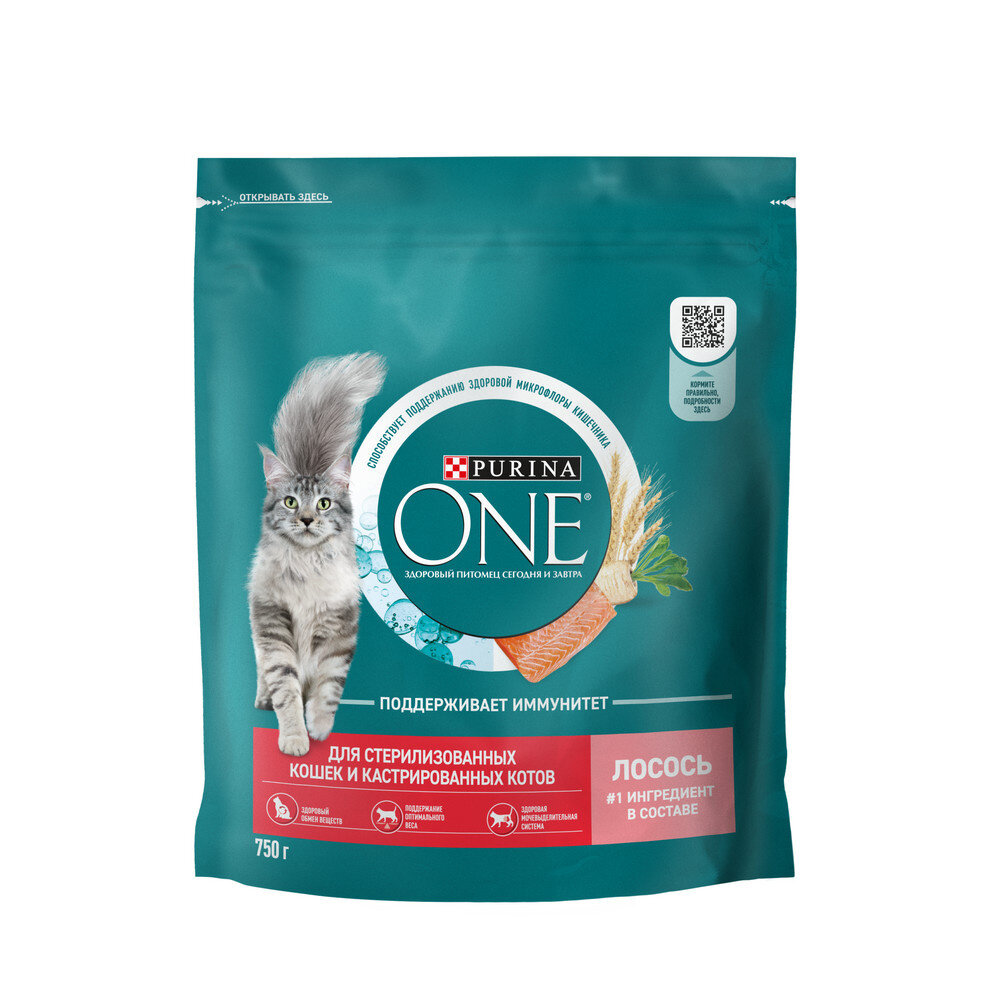 PURINA ONE 750 г сухой корм для стерилизованных кошек и кастрированных котов, с высоким содержанием лосося