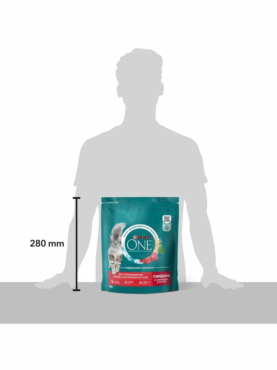 PURINA ONE 750 г сухой корм для стерилизованных кошек и кастрированных котов, с высоким содержанием говядины