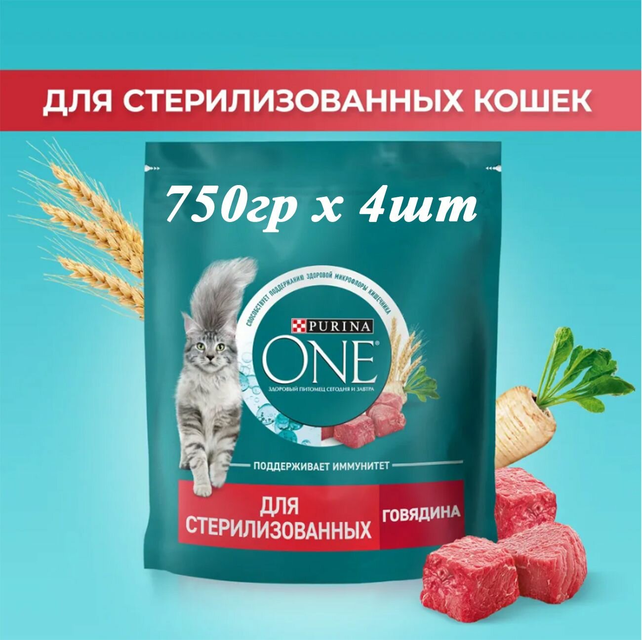 Купить Сухой корм PURINA ONE для стерилизованных кошек и кастрированных котов, с высоким содержанием говядины и пшеницей 750 г, 4 шт
