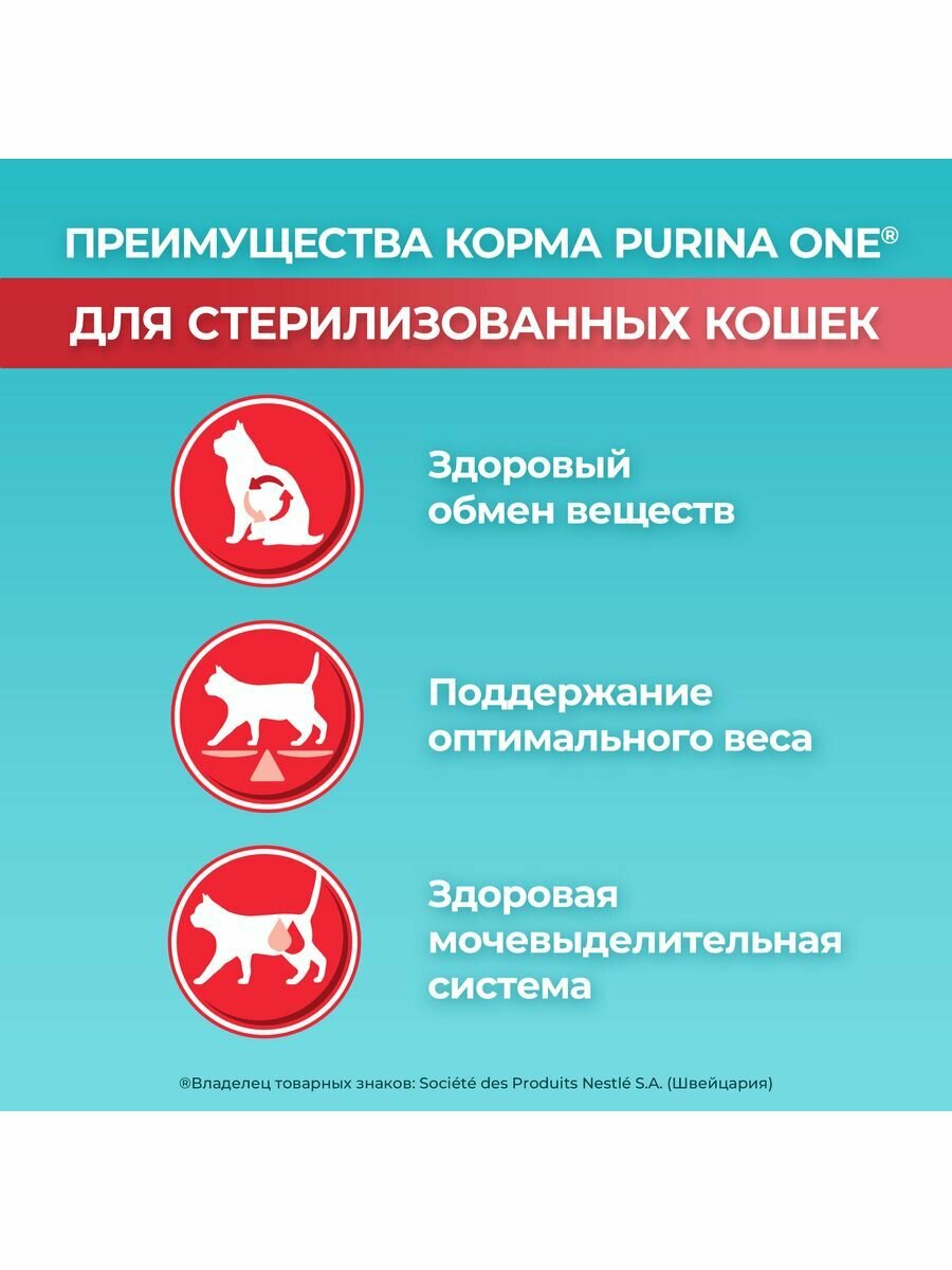 PURINA ONE для взрослых кастрированных котов и стерилизованных кошек с лососем и пшеницей (1,5 кг)