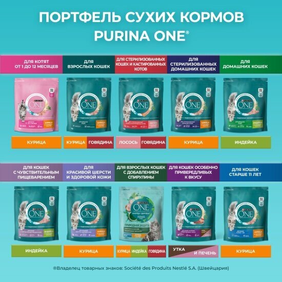 Сухой корм Purina ONE для кошек старше 11 лет, курица и цельные злаки, 750 г