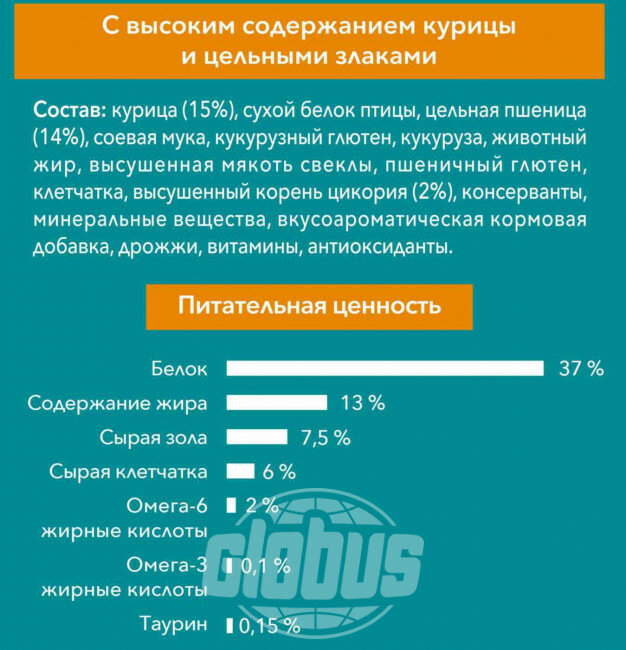 | Отзыв: | Моя привередливая кошка подсела на этот корм, другой не ест. Гранулы среднего размера, и ей удобно их грызть, запах довольно приличный, нет этой вонизмы как от дешёвого корма. После еды кошка довольная, шерсть шелковистая, не лезит. |