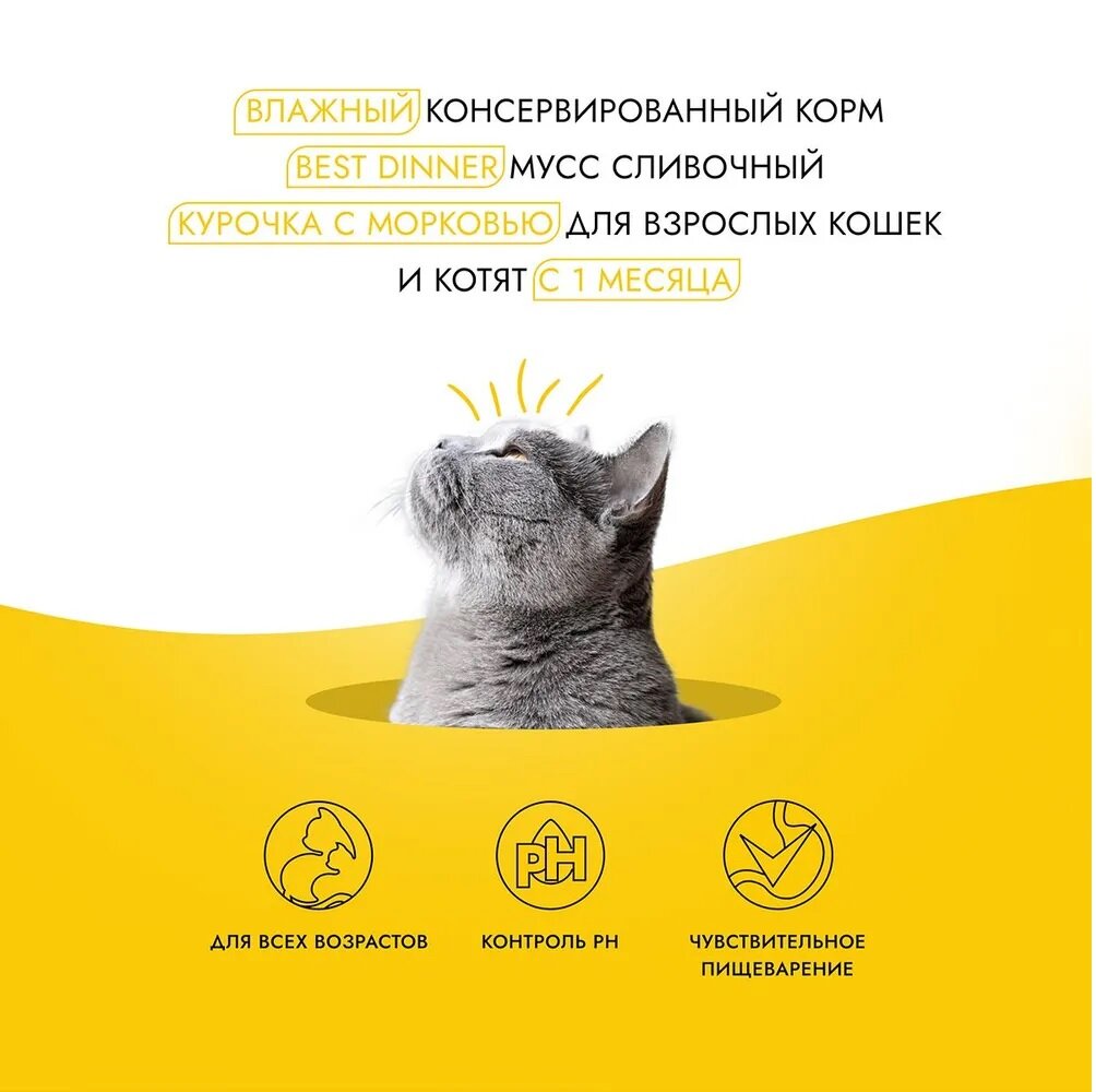 Best Dinner Exclusive консервы для кошек и котят с 1 месяца мусс сливочный с курочкой и морковью пауч 24х85г