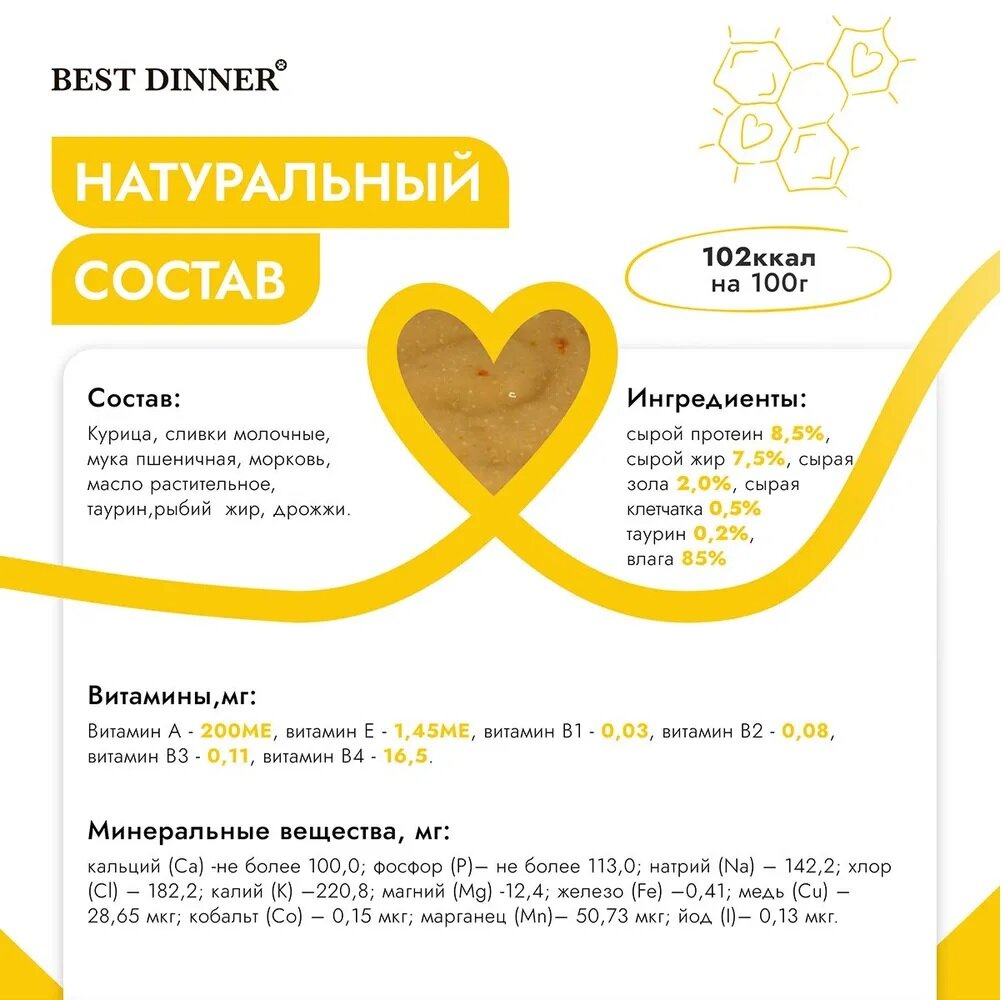 СохранитьBest Dinner Exclusive паучи для кошек при восстановлении мусс сливочный с курочкой и морковью - 85 г х 24 шт интересное: