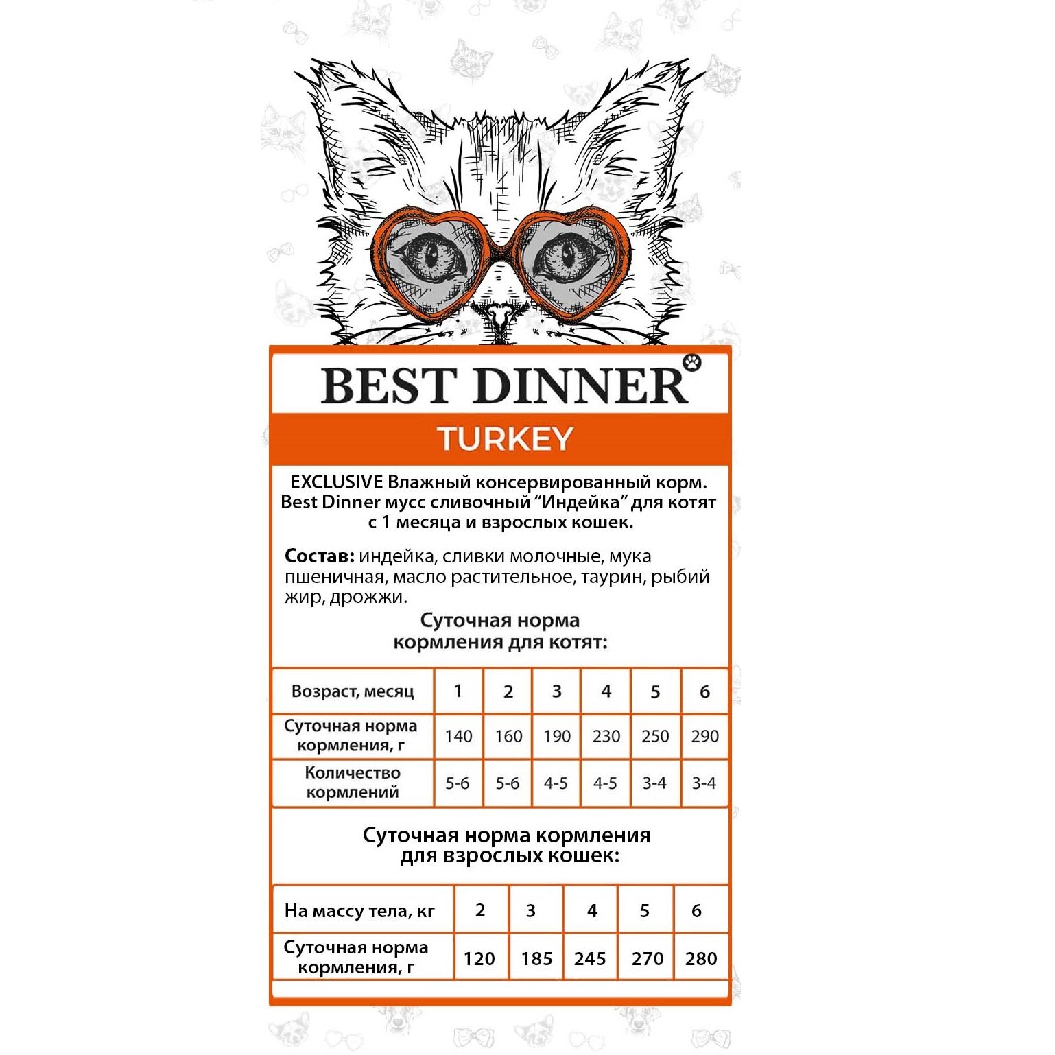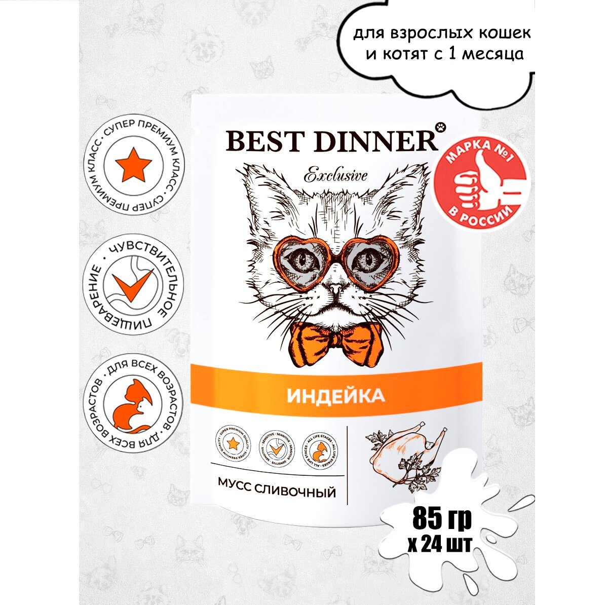 BEST DINNER EXCLUSIVE для кошек и котят сливочный мусс с индейкой 85 гр (85 гр х 24 шт)