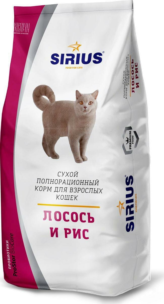 Сухой корм сириус SIRIUS PREMIUM для взрослых кошек, лосось и рис, 10 кг