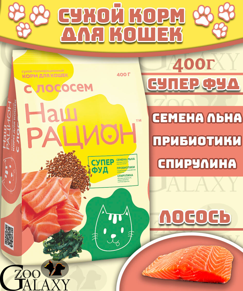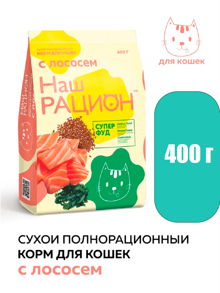Сухой корм для взрослых кошек Наш рацион полнорационный, лосось 0,4 кг