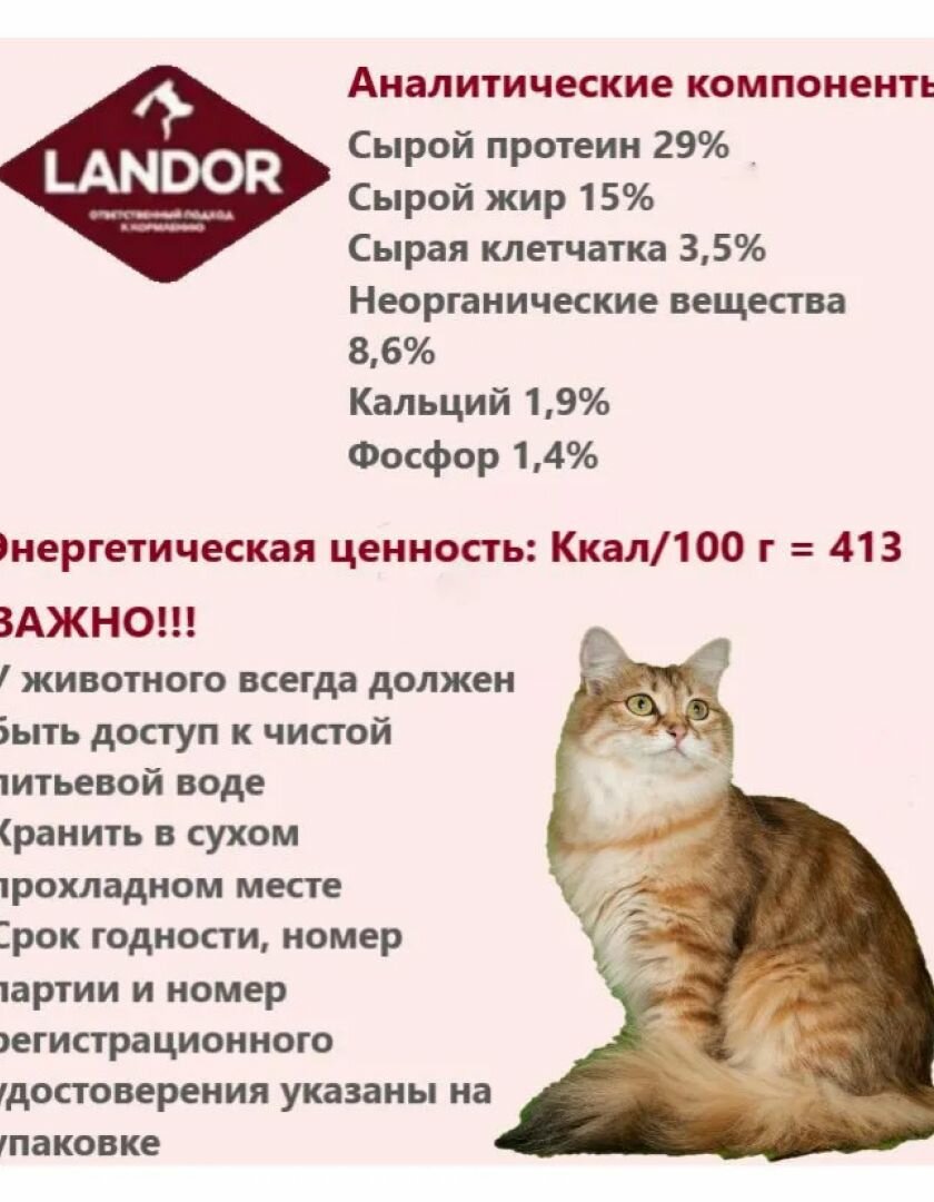 | Отзыв: | Выбрали линейку Ландор. Наша дама тащится от этого корма. Готова упаковку разорвать, хотя сама уже как сарделька. 5.5кг в 9 месяцев, вот что делает Ландор для котят.) |