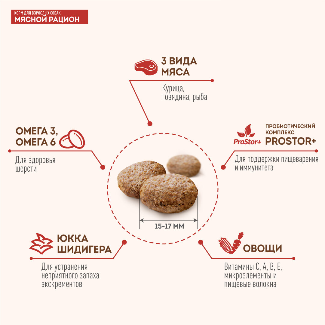 Сухой корм сириус SIRIUS PREMIUM для взрослых собак всех пород, мясной рацион, 15 кг