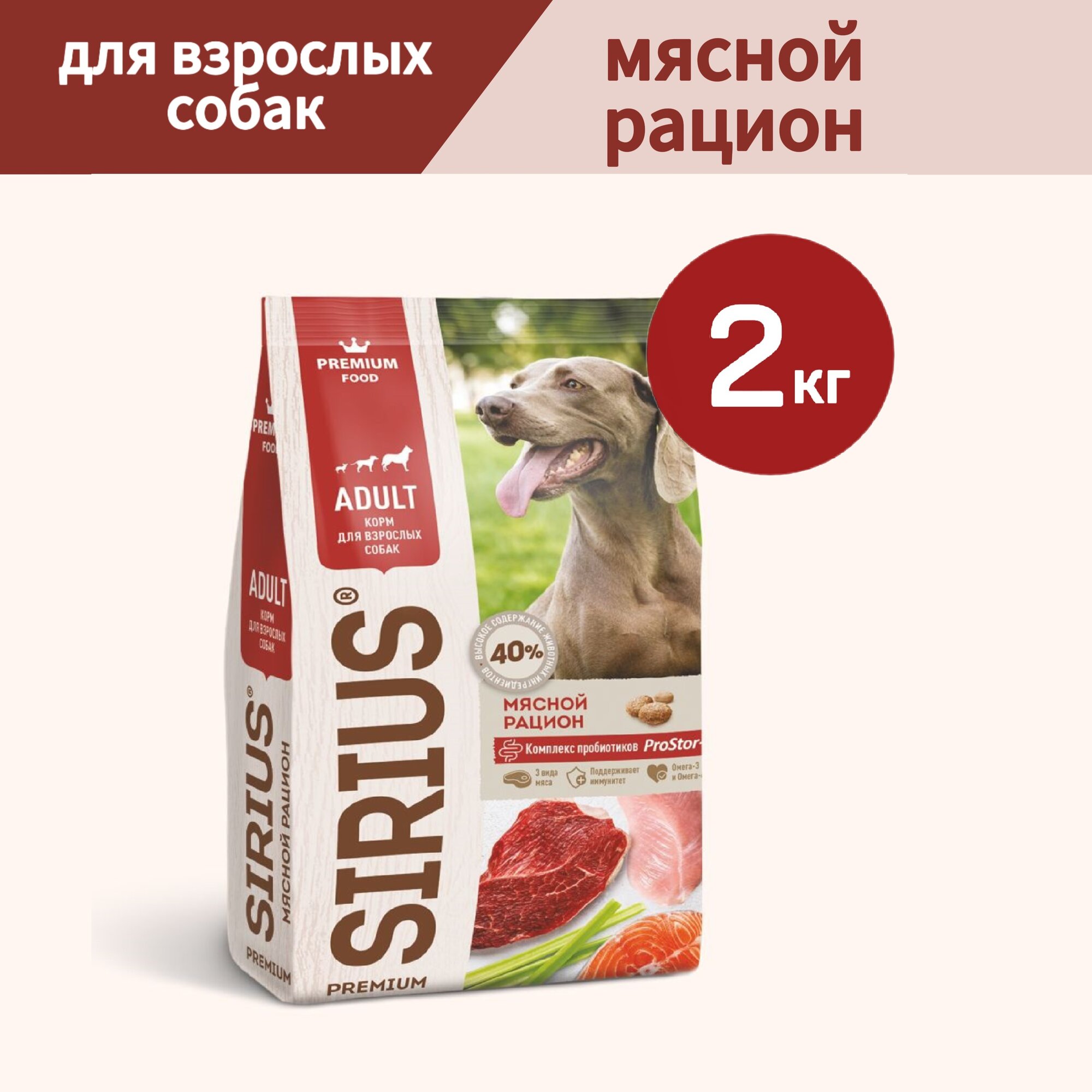 Sirius Корм сухой для взрослых собак мясной рацион, 2 кг