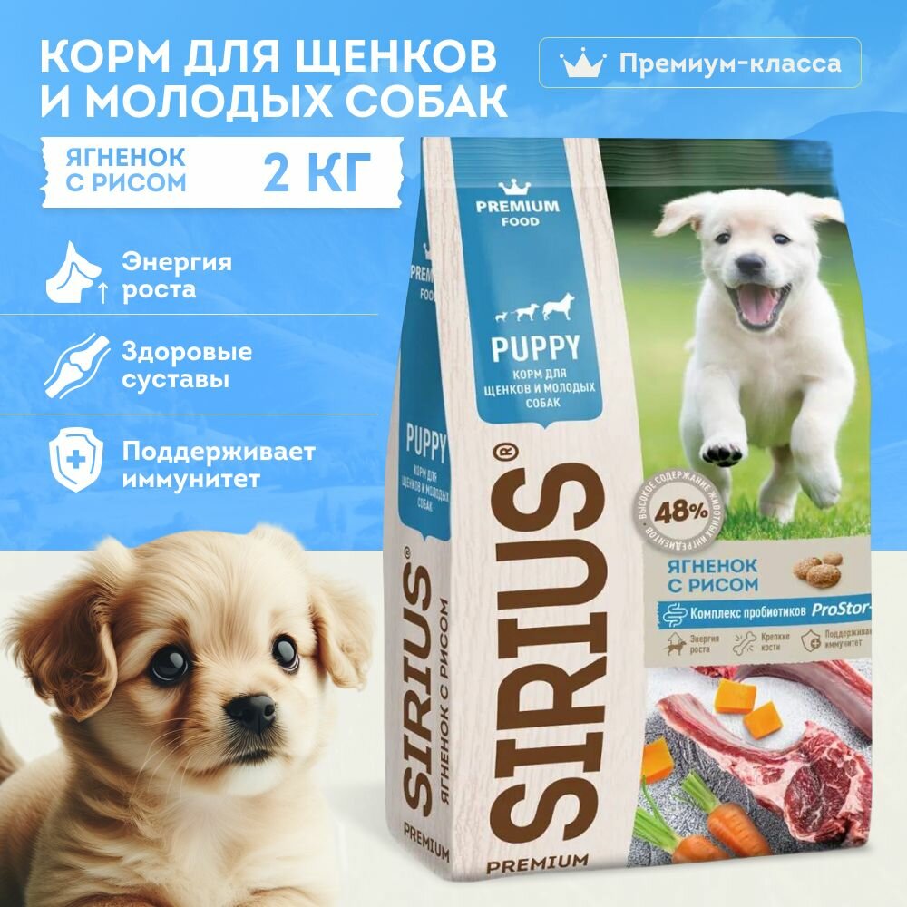 Корм для собак сухой Sirius / Сириус Puppy для щенков и молодых животных всех пород гранулы с ягненком и рисом 2кг