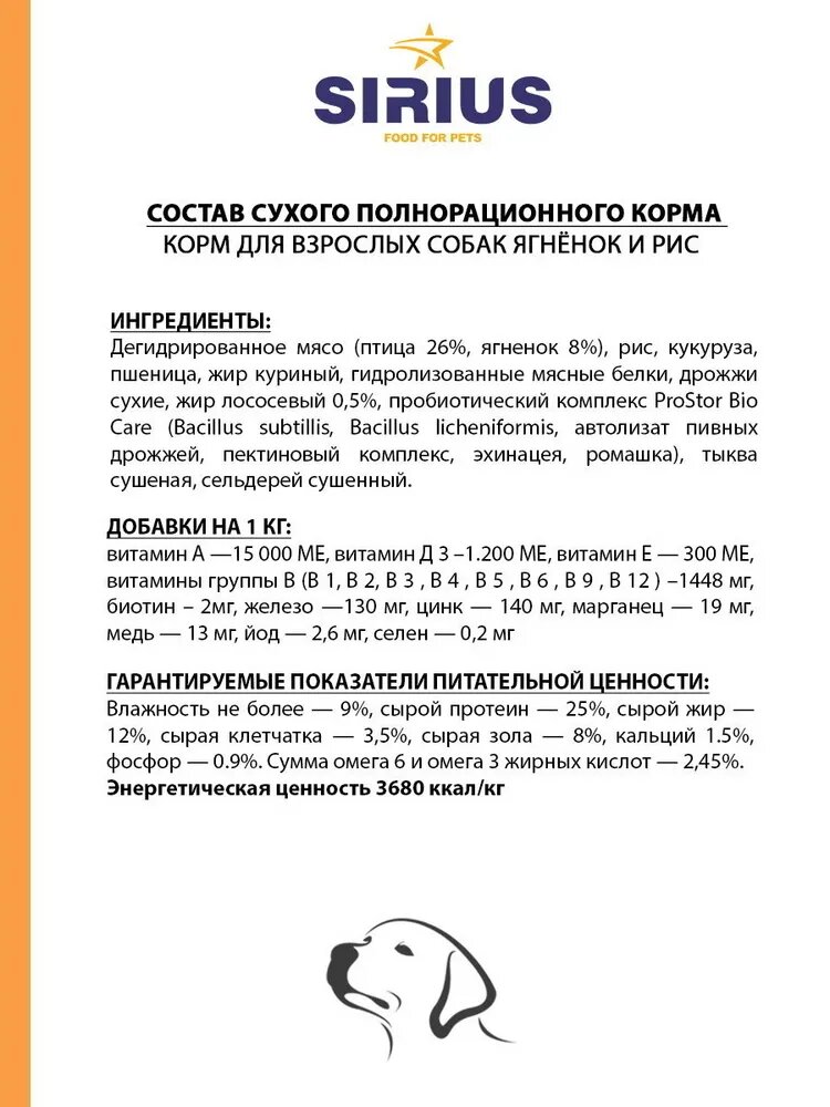 Ниже Вы можете прочитать отзывы на Сухой корм SIRIUS для щенков и молодых собак с ягненком и рисом, 2кг, ознакомится с подробными характеристиками, посмотреть интересные обзоры и фотографии на Сухой корм SIRIUS для щенков и молодых собак с ягненком и рисом, 2кг.