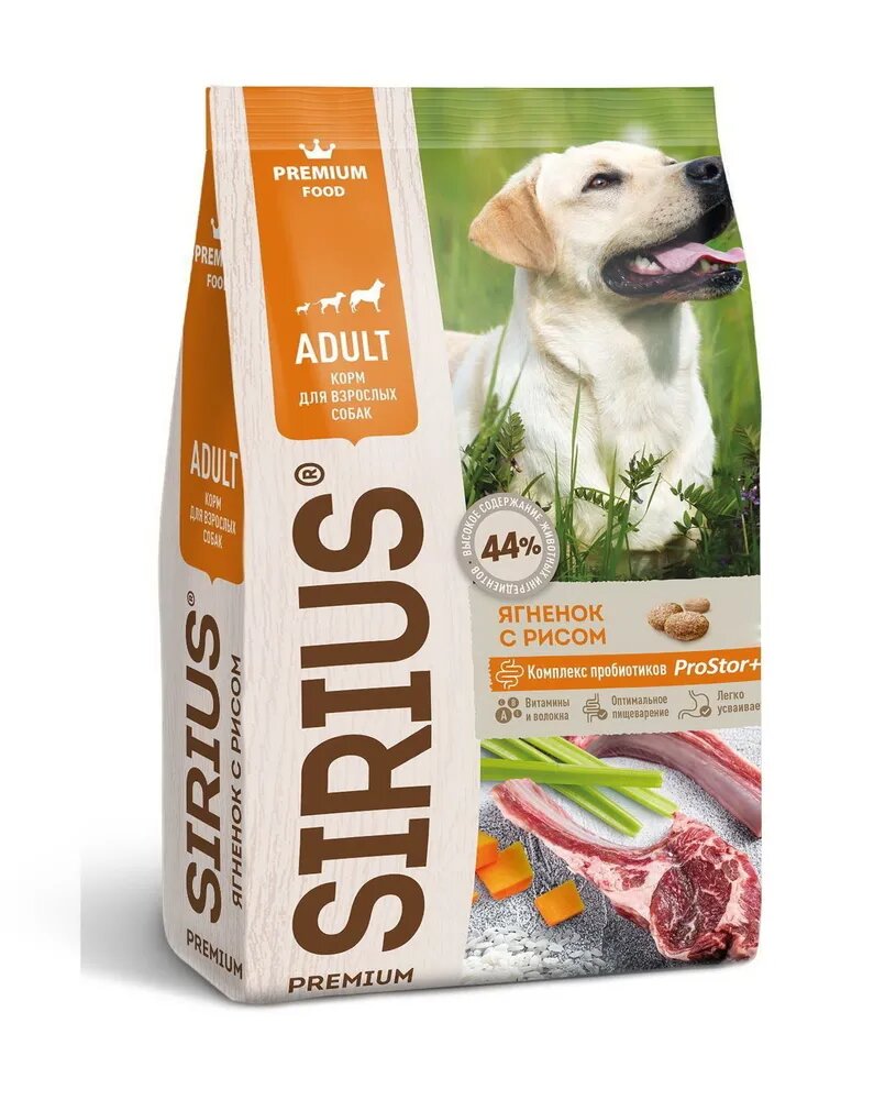 Корм сухой для собак SIRIUS 15кг для щенков и молодых собак, ягненок и рис, сириус