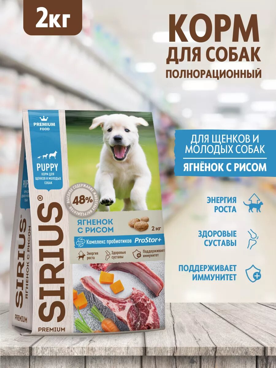 Сухой корм для щенков Sirius ягненок, с рисом 1 уп. х 1 шт. х 2 кг