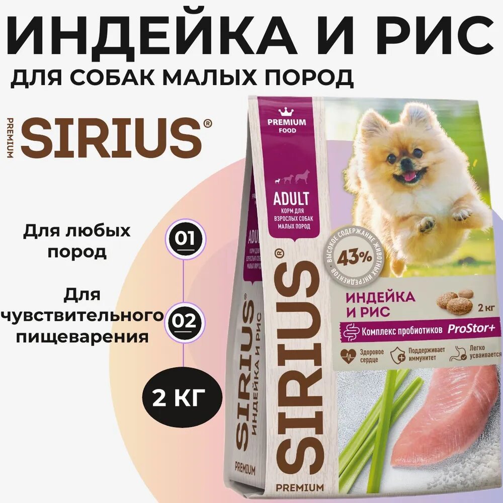 SIRIUS для взрослых собак маленьких пород с индейкой (2 кг)