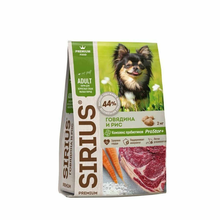 Купить Sirius Премиальный сухой корм для взрослых собак малых пород с говядиной и рисом, 2 кг