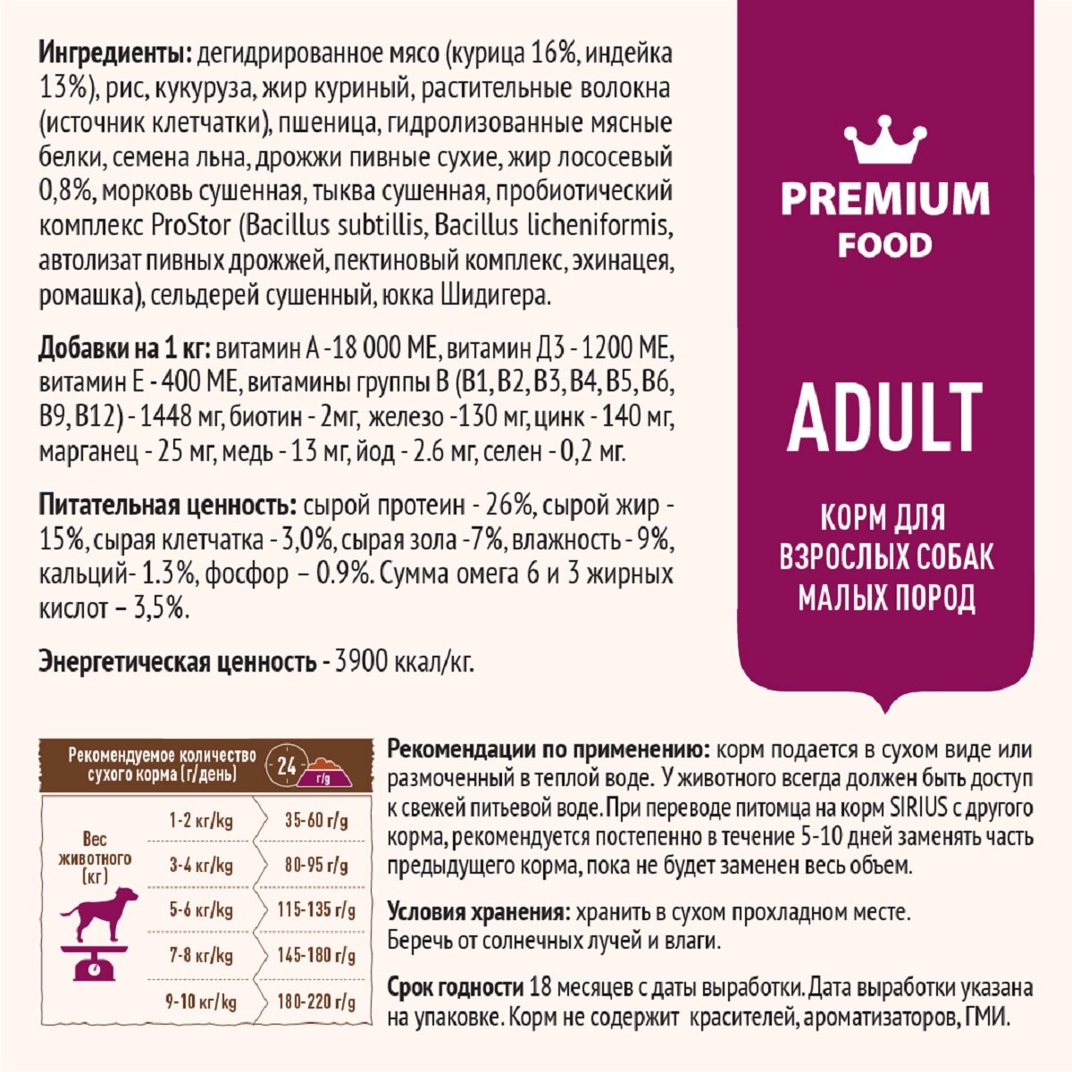 SIRIUS для взрослых собак маленьких пород с индейкой (2 + 2 кг)