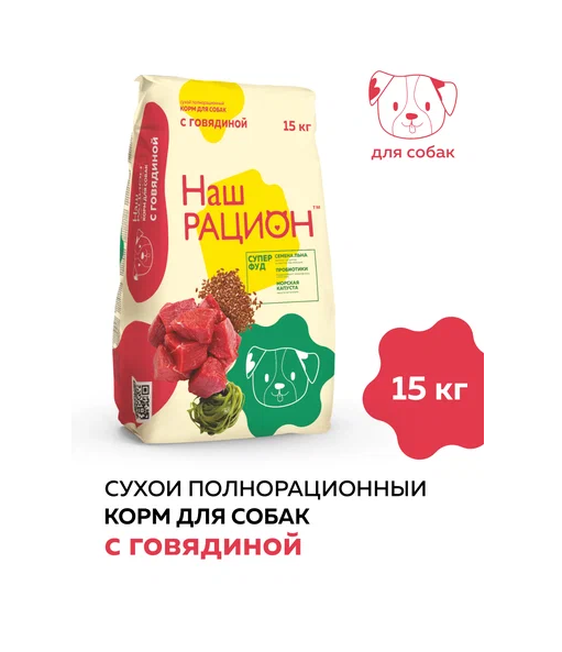 Сухой корм для собак Наш Рацион с говядиной 15 кг