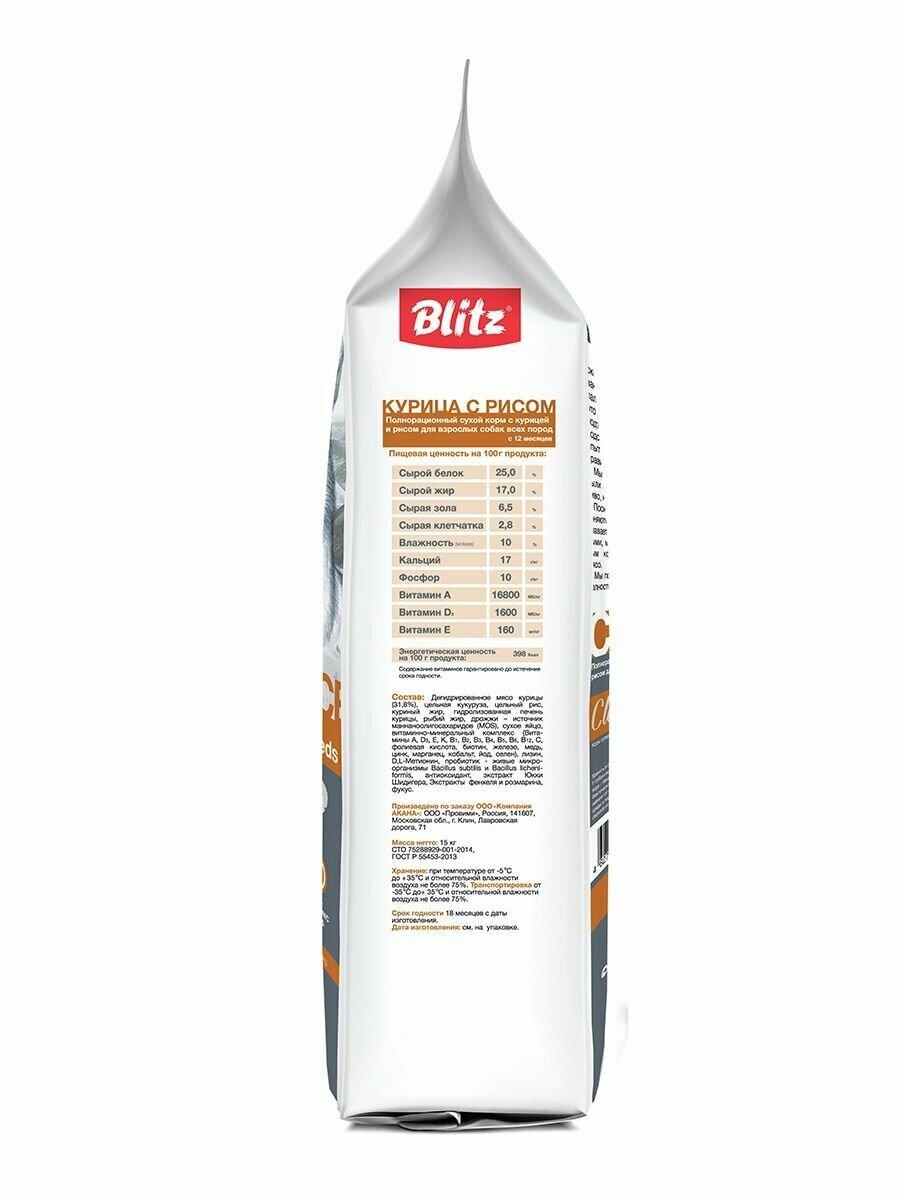 Корм сухой Blitz (pet) Blitz для взрослых собак Курица, рис 15кг