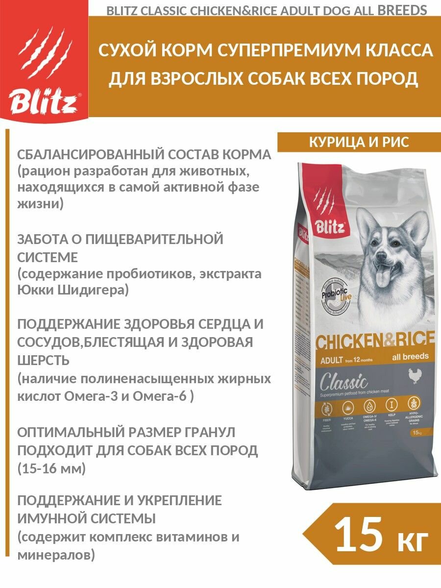 Сухой корм для собак Blitz Classic Chicken & Rice курица с рисом, 15 кг