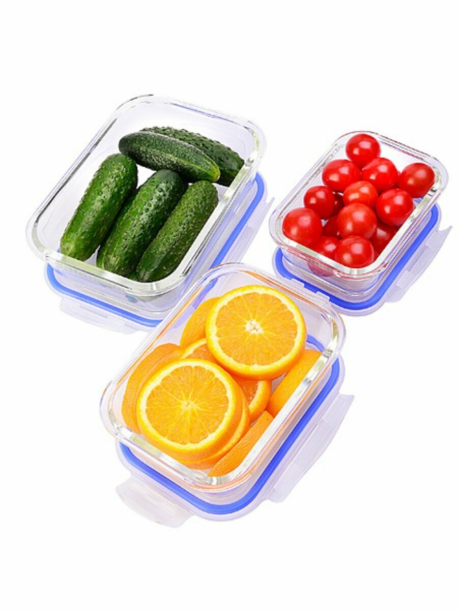 Набор контейнеров для еды с крышкой LORAINE, стеклянный, прозрачный 26266