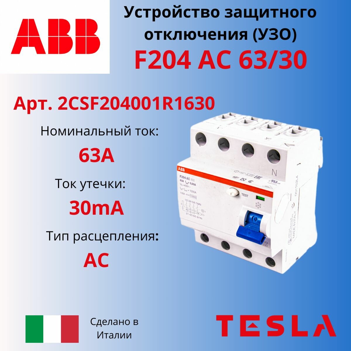 Устройство защитного отключения ABB F204 УЗО 63А 30 мА 4P тип АС 10 кА (1 шт.)