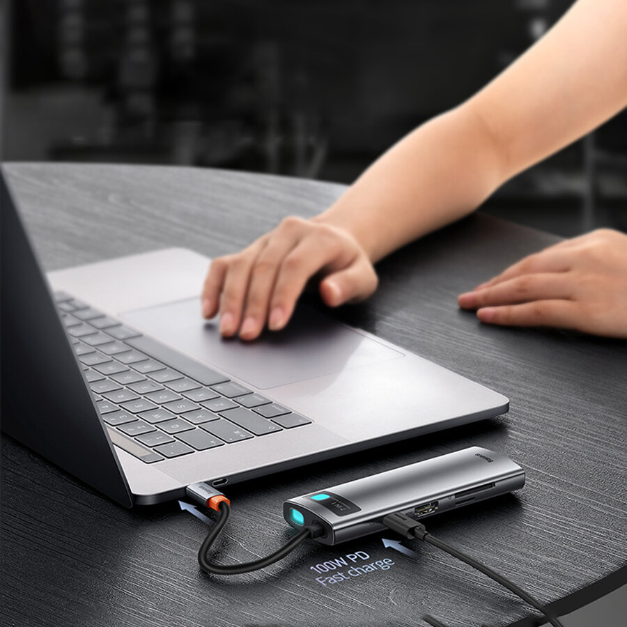 Хаб Baseus Metal Gleam Series 7-in-1 Multifunctional Type-C HUB Docking Station (WKWG040113) Type-C to HDMI*2+USB3.0*3+PD*1+RJ45*1